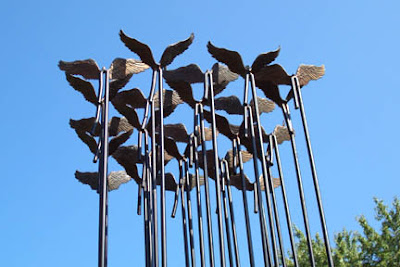 Now the last cache that we tried to find this night was called "A Quiet Place" and although it was a quiet place...we made a lot of noise about the fact that it had been muggled. If we (ok..me) had read the previous logs...we would have not spent a good hour trying to find it....but if we also read the logs...we might not have stumbled across this AWESOME piece of art. It is called "Twisted House".