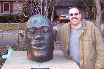 This next cache was really cool! We had been to this area before....but at that time....the cache we were seeking tonight was not in place then. I knew that it was on or around the giant bear statue pictured below....but I had no coords at all written down, but we decided to try it anyway. Less then 8 minutes after getting there...we had it in hand.